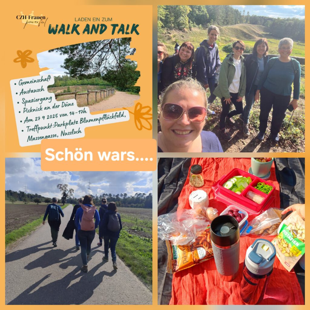 Nach einer verregneten Woche haben sich sieben Frauen zum ersten Walk-and-Talk-Termin getroffen. Bei warmem, sonnigem Wetter sind wir lachend und erzählend den geplanten Weg entlangspaziert. Auch beim abschließenden Picknick gab es viel zu erzählen und wir haben uns besser kennengelernt und viel zusammen gelacht.